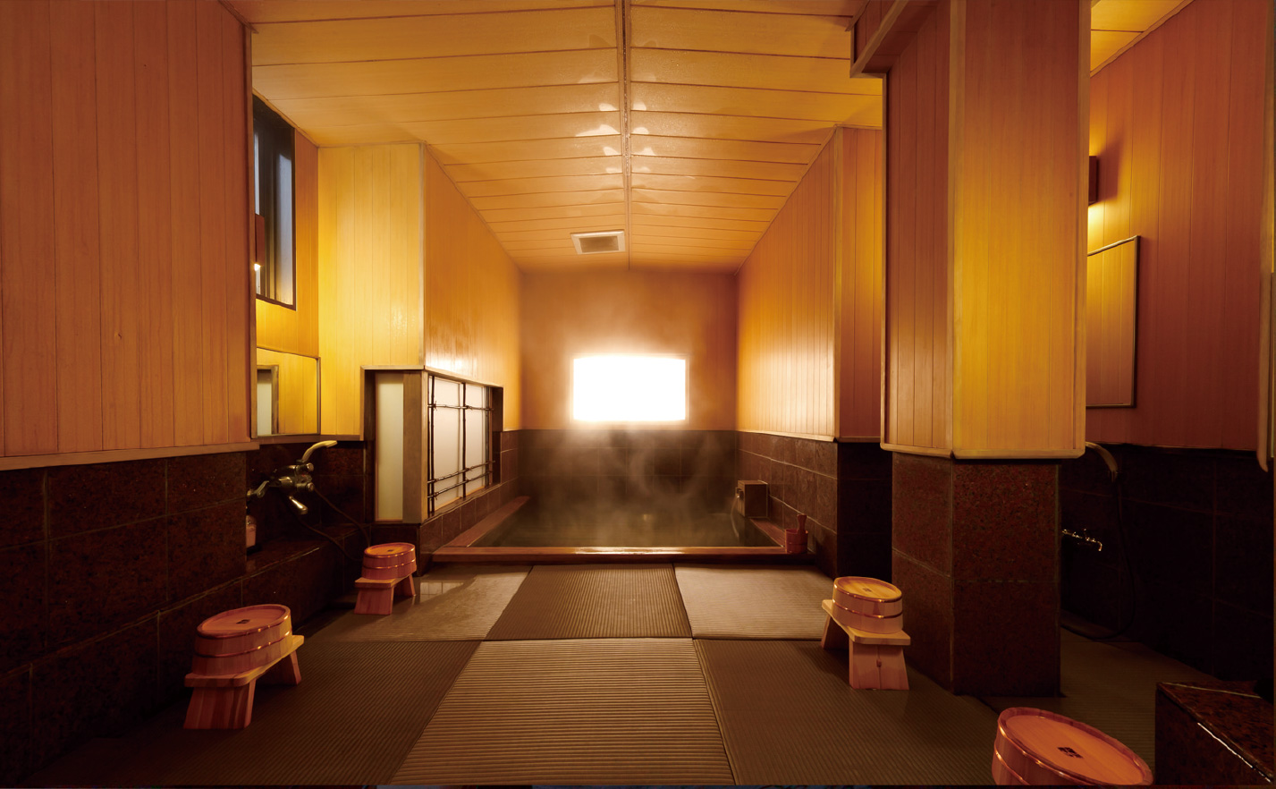 Smooth, Radiant Skin: Loved by Women, “Kuranoyu”in the Uchiurayama Onsen Hot Spring Quality: Metasilicic Acid, Metaboric Acid, Sodium Ion, Hydrogen Carbonate Ion This colorless and transparent hot spring is known for its benefits to the skin, fatigue recovery, and those with cold sensitivity. There are two communal baths, the 'Tatami Bath' and the 'Marble Bath,' which alternate between men and women at different times. In addition, there is a private open-air bath on the top floor. *The hot spring is heated to a suitable bathing temperature and is circulated and filtered for hygiene purposes."