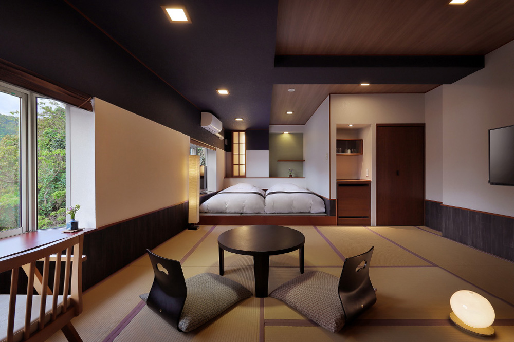 2022年にレインシャワーブースをリニューアルした和室にツインが付いた広々とした和洋室(42㎡)です。 テレビ2台、空気清浄機、DVDデッキ、ウォーターサーバー。 ※アメニティーは豊富に取り揃えております。 間取り 和室+ツインの和洋室(42㎡)(定員2〜4名) レインシャワーブース付 この部屋を予約する 海側/檜風呂付和洋室 シャワーブース付和洋室 海側/檜風呂付和室(ビューバス) 港側/檜風呂付和室